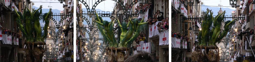 Darrere una carrossa amb les esposes dels esquadrers, amb un vestit del mateix port, tancaven l'estampa.