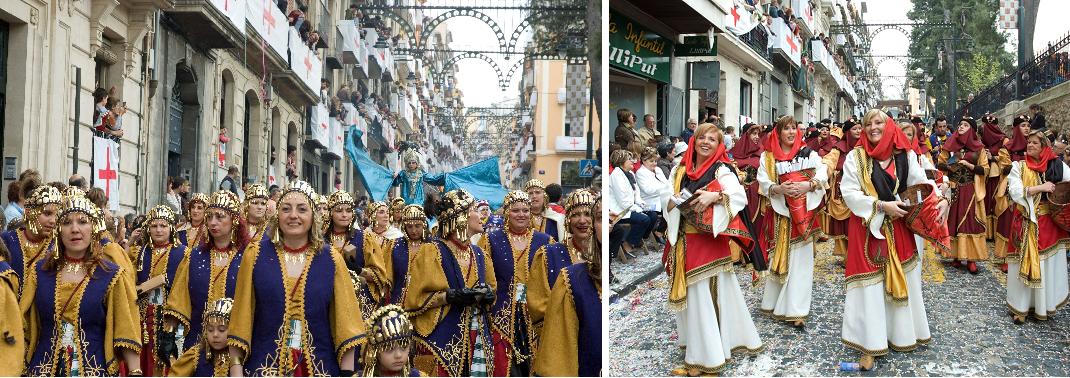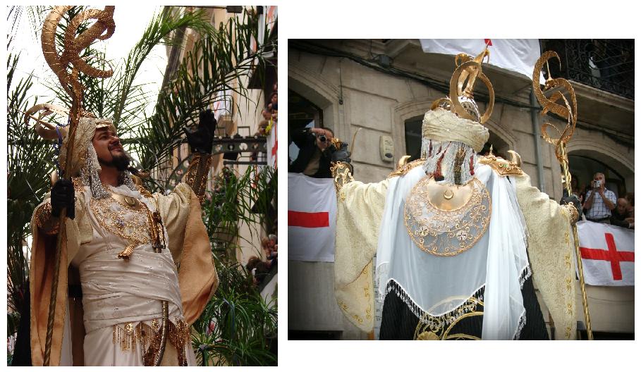 El Capità lluïa un vestit dissenyat per l'escultor alcoià Ismael Llorens, vestia teles nobles de color beix clar, evocant les arenes del desert, l'interior de les bocamànigues eren de color salmó suau, en el turbant, també en color beix, lluïa un elm daurat. El vestit estava rematat per una capa de color marró brodada en fil d'or. En el centre, travessant la faixa, lluïa una gran daga granadina.