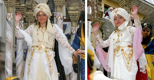 Darrere li segueix el seu seguici, el mateix està format per les seues filles, Paula i Amira, les mateixes desfilen en una carrossa tirada per una quadriga de cavalls, a les mateixes els acompanya una guàrdia infantil.