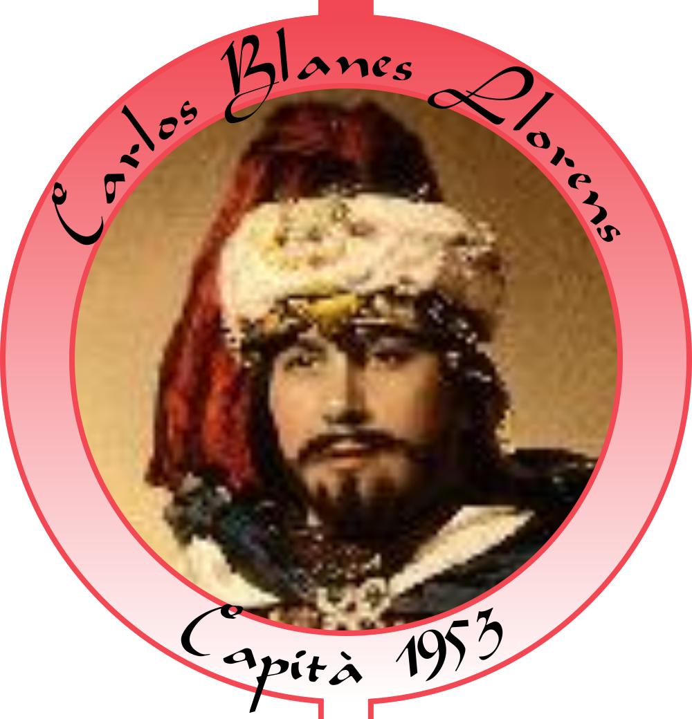 L'estrena d'una nova enramada i un dia esplèndid van acompanyar al nostre Capità. Túnica negra, turbant en roig i blanc amb plomes al vent i a lloms d'un blanc corser. Boniques carrosses amb els símbols més identificatius de la Filà.