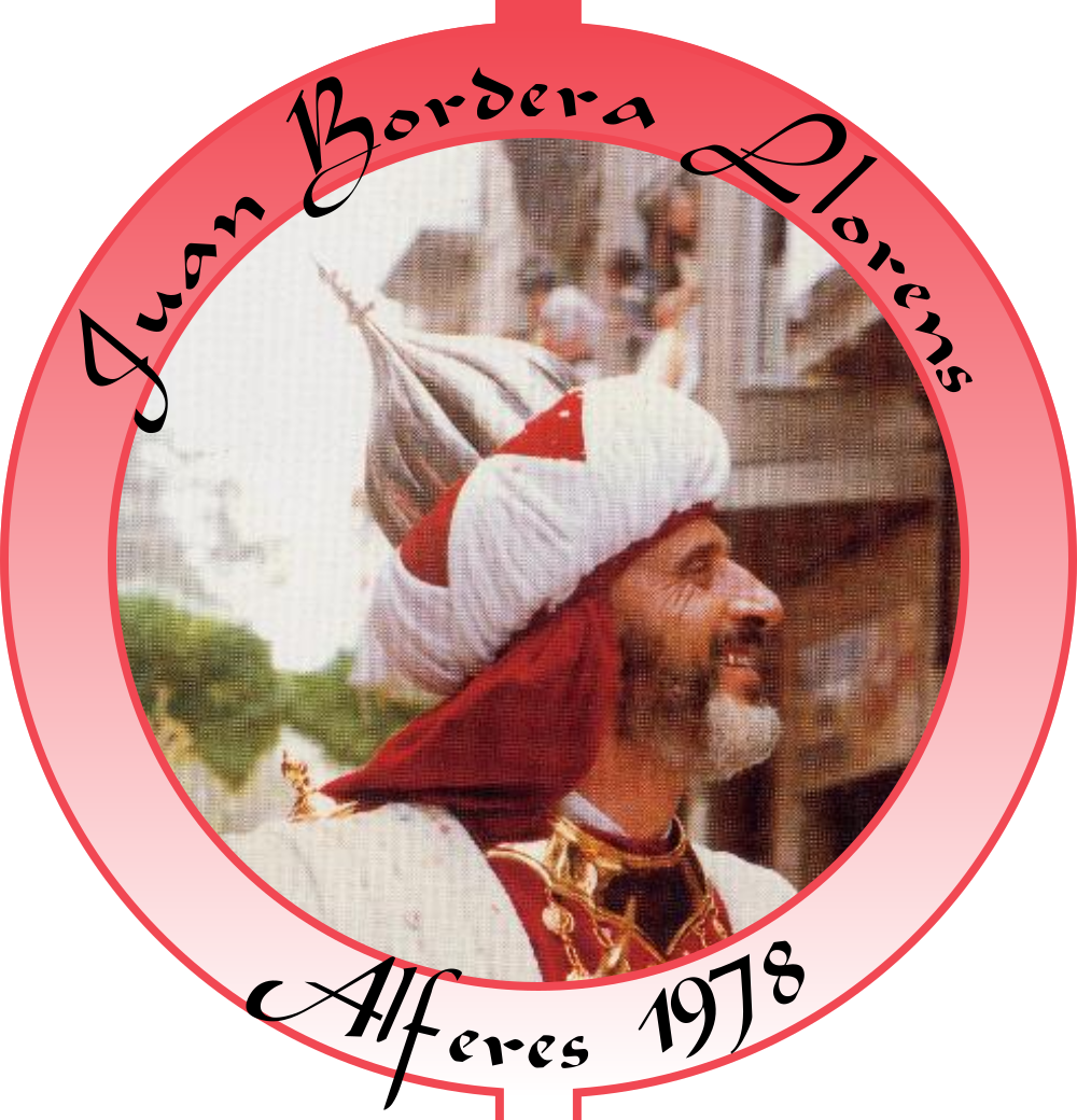 A les huit menys tres minuts de la vesprada l'Alferes moro arriba a la plaça d'Espanya. És Juan Bordera, visiblement emocionat, que marxa a peu acompanyat del seu fill i “rodella”, portant el seu cavall de cavalcada i combat darrere. El vestit és esplèndid, original, de gran efecte tant per les peces com per la qualitat i els tons de les teles emprades, la qual cosa unit a l'altura del personatge, li dona un caràcter eminentment superb. Porta una escorta de xirimiteres, les seues favorites. Una carrossa amb els cavalls de l'emblemàtica de la Filà, quallada, a més, de minarets nassarites. (Pres de la Revista de Festes de 1979).