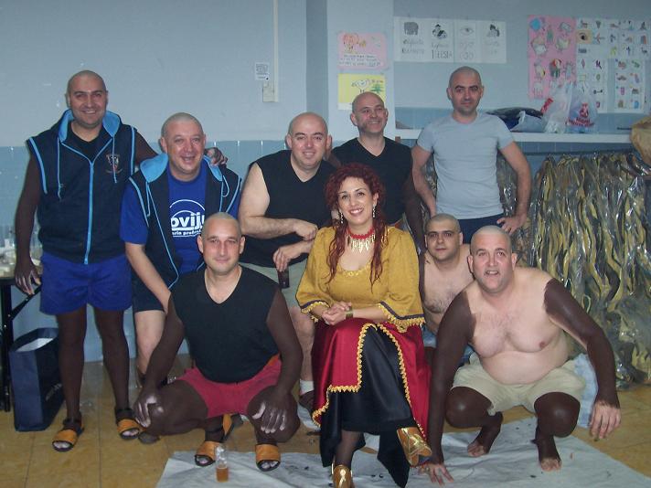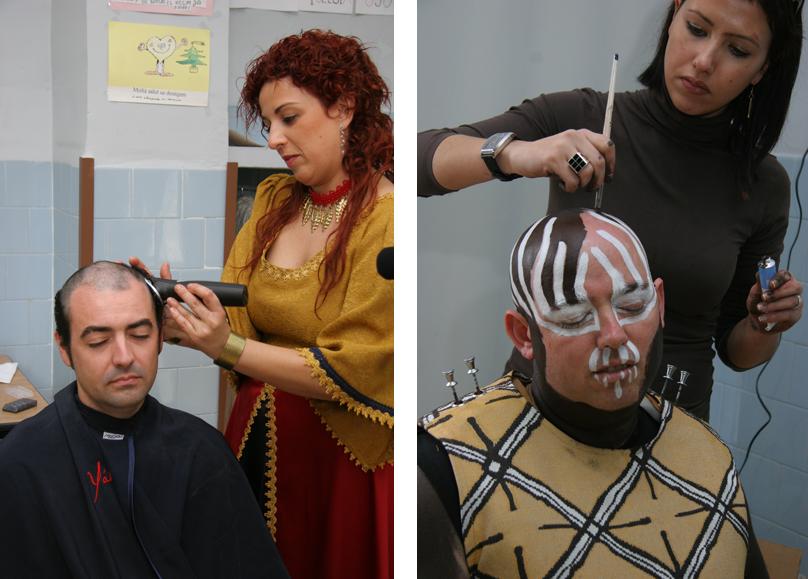 De esta forma, con todo preparado, llegamos al día de la prueba conjunta de los trajes en el local de Fermín Vélez el confeccionista del traje. Era el domingo 1 de abril. Allí entre risas y nervios, nos plantificamos el traje y cuando íbamos a ponernos la calva artificial resonaron unas palabras: ¡JO EM RAPE EL CAP! Un decidido había puesto palabras a lo que todos pensábamos. La mejor forma de simular una cabeza rapada es raparse el pelo. De esta forma, a tres semanas de fiestas, la decisión fue mayoritaria: ¡ENS RAPEM!
