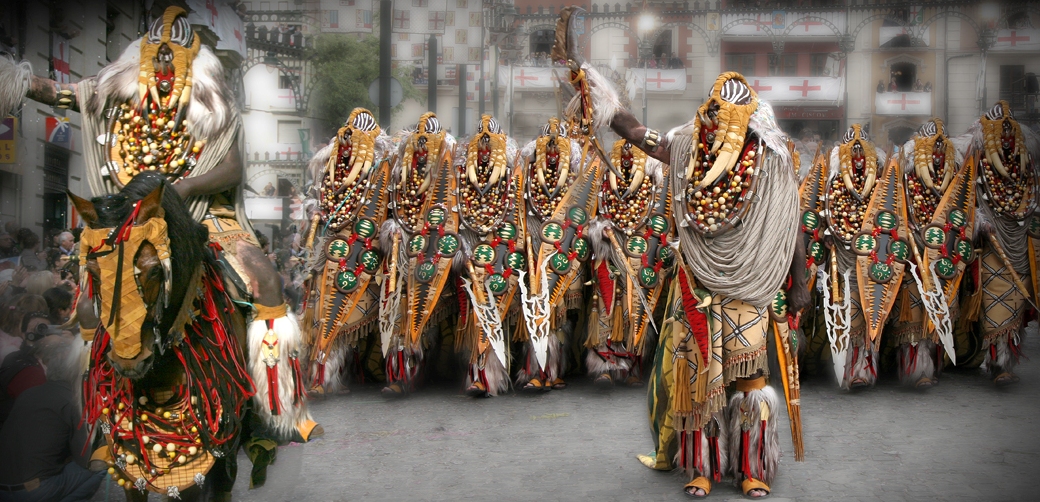 Pero aún faltaba el último plato fuerte. La escuadra de esclavos. Nunca mejor dicho. Jordi Sellés, autor del boceto, no cabía dentro de sí. La escuadra de una espectacularidad asombrosa, nos transportaba a una imagen de africanidad en el sentido más clásico del diseño festero alcoyano para las denominadas “escuadres de negres”.